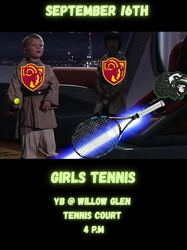 Hey, Hey, Hey, Warriors! I have exciting news to share. Our YB Girls Tennis team will be playing against Willow Glen at home this Thursday on October 2nd at 4 PM. This looks to be a thriller as this will be a rematch. Unfortunately, we lost to Willow Glen in an away game in the season opener, but we hope to win in this one as we now have the home court advantage. Some players who performed well last game to look out for are Trea Li who had really good corner shots and captain Nhu Vo who hit good back line shots. Come out to support our girls as this will be at the YB tennis courts and we are confident they will get the W back.